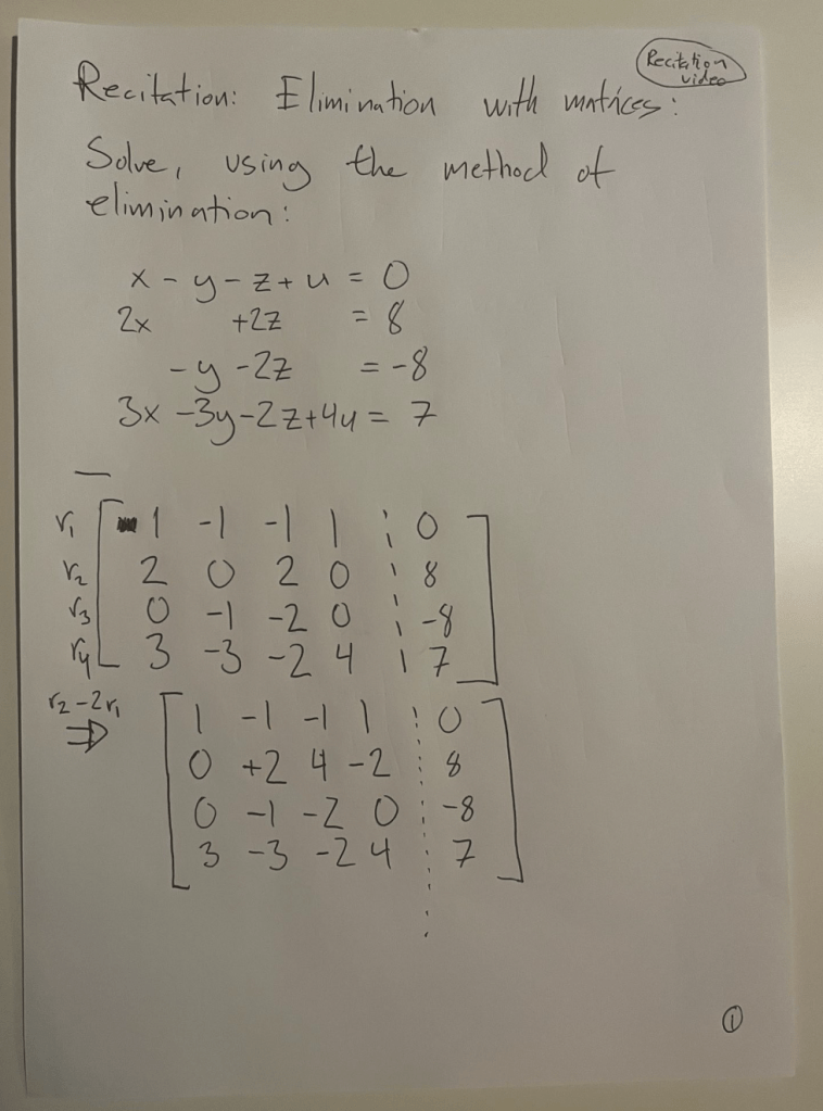 Solving the problem from the 3. recitation video from the MIT course “18.06SC – Linear Algebra”.