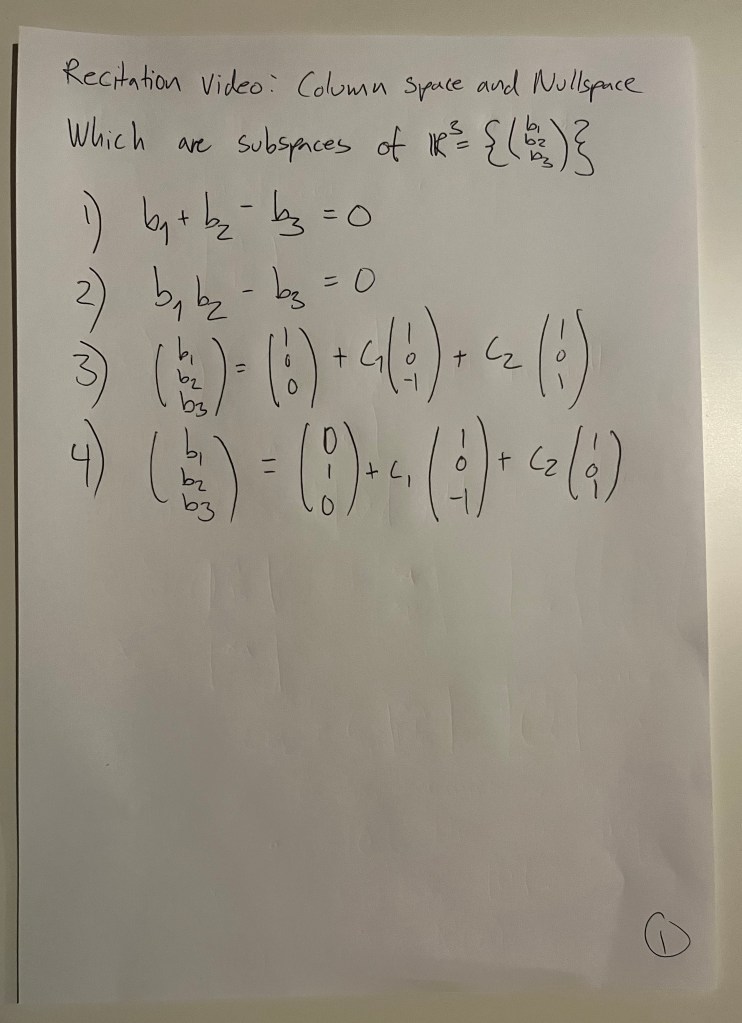 Solving the problem from the 7. recitation video from the MIT course “18.06SC – Linear Algebra”.