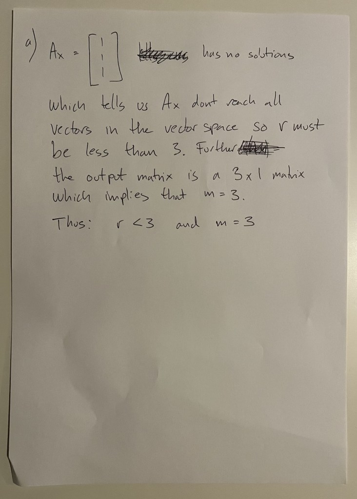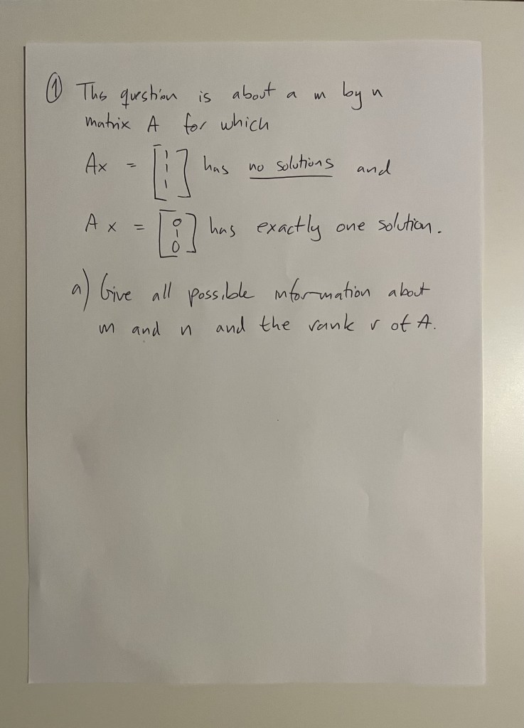 Solving problem 1a) of Exam 1 from the MIT course “18.06SC – Linear Algebra”.
